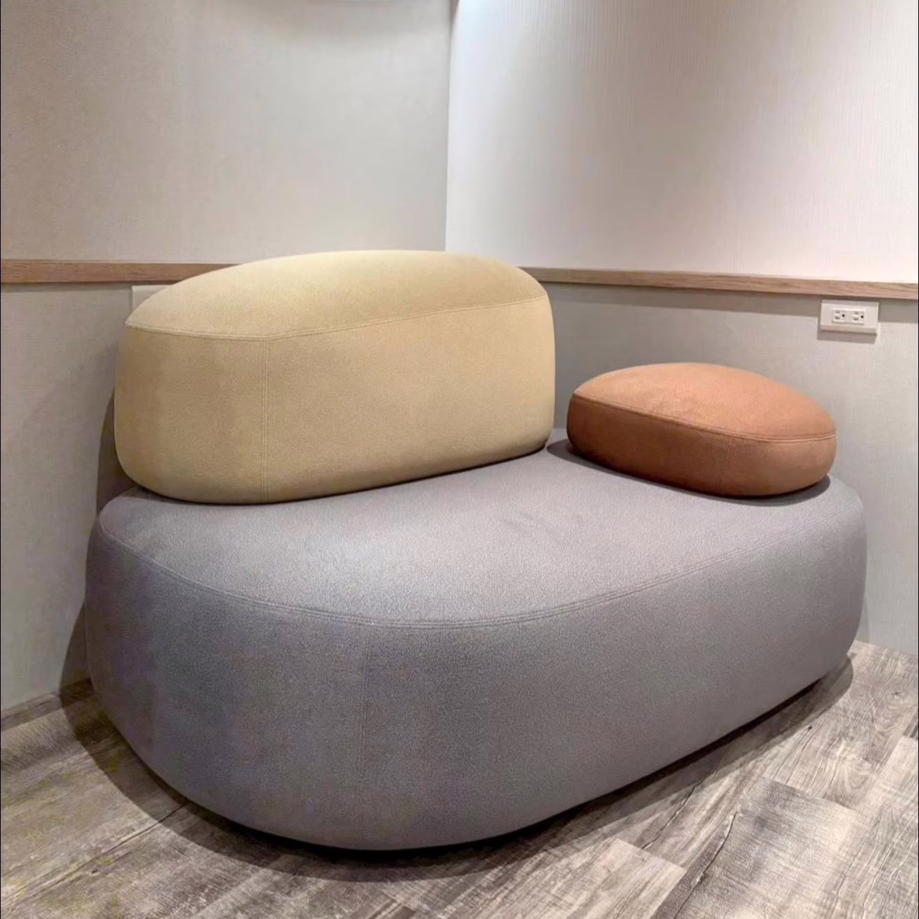 - 非對稱設計:告別傳統沙發的對稱束縛,鵝卵石沙發模擬自然界石頭經沖刷後的圓滑型態,360 度無死角的圓潤包覆感,讓空間視覺更加流暢寬敞。
