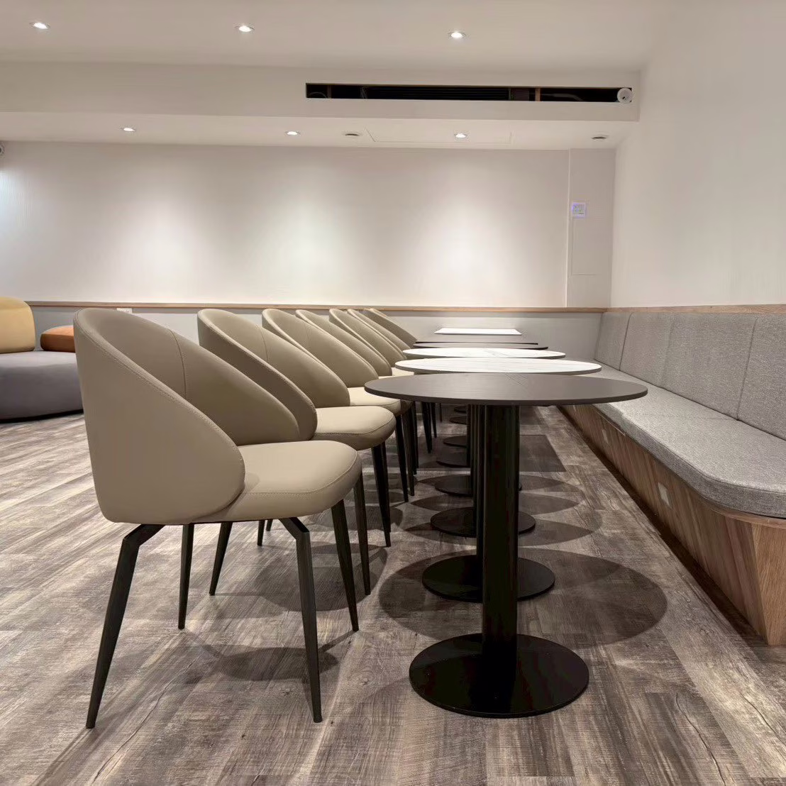 商業空間的家具挑選,除了美觀,更需考量「私密感」與「舒適度」。這款鵝卵石沙發採用親膚的絨布材質,觸感細膩。其厚實的背靠設計,不僅提供了良好的腰部支撐,放置於角落時,更形成了一個半開放式的包廂感。對於喜愛拍照打卡的顧客來說,這裡就是最完美的構圖背景,隨手一拍即是質感大片。